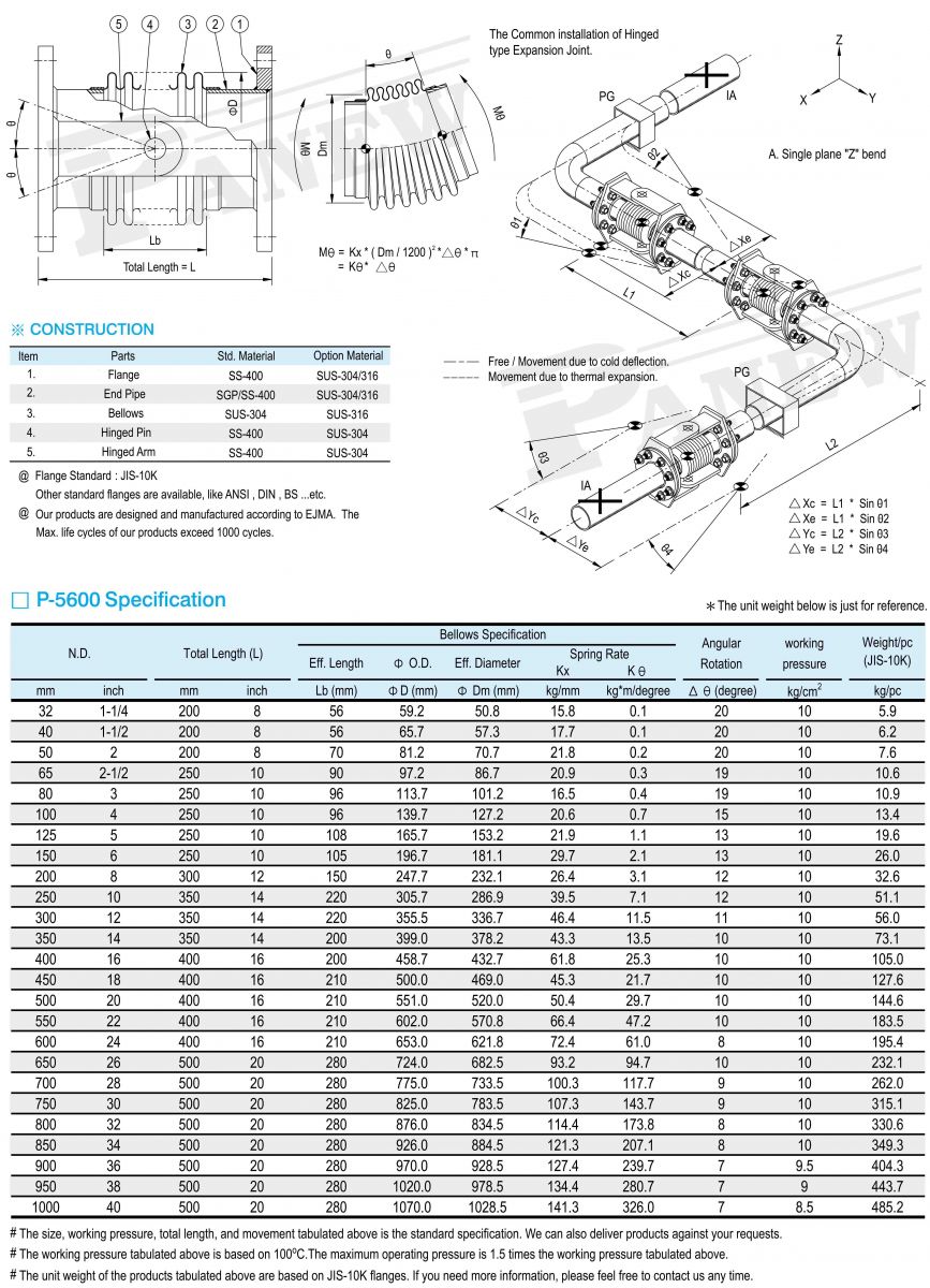 P-5600 Hinged Type Expansion Joint