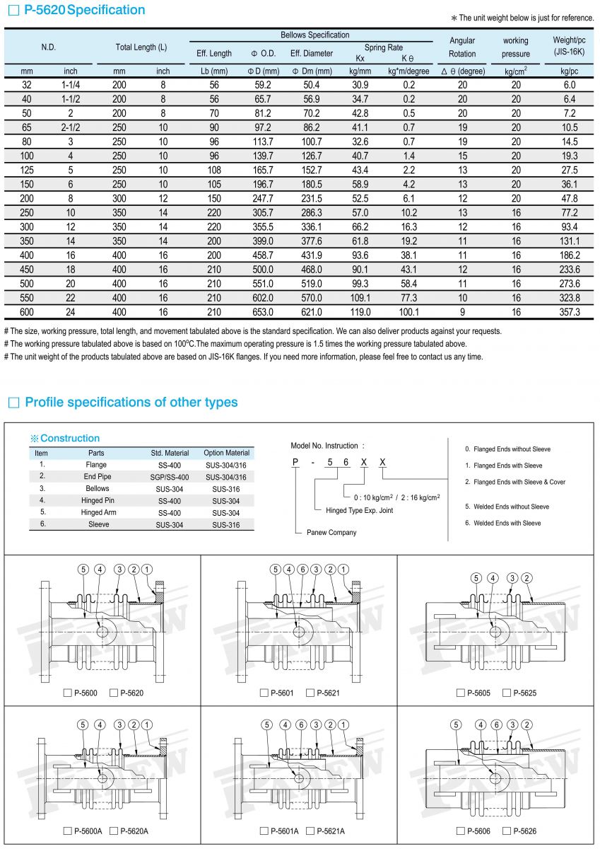 P-5620 Hinged Type Expansion Joint