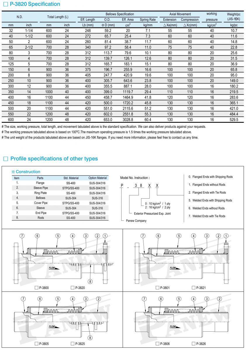P-3820 Exterior Pressurized Expansion Joint