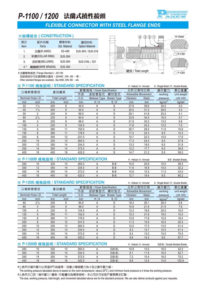 P-1100 / 1200 法蘭式撓性接頭