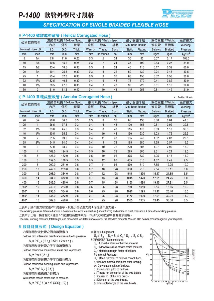 P-1400 軟管外型尺寸規格