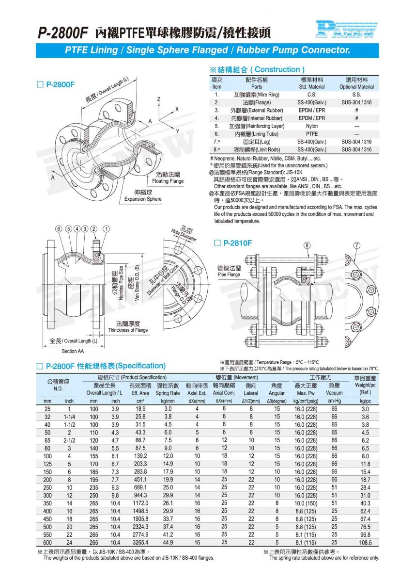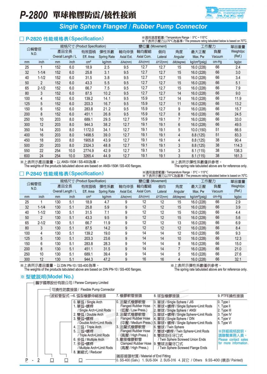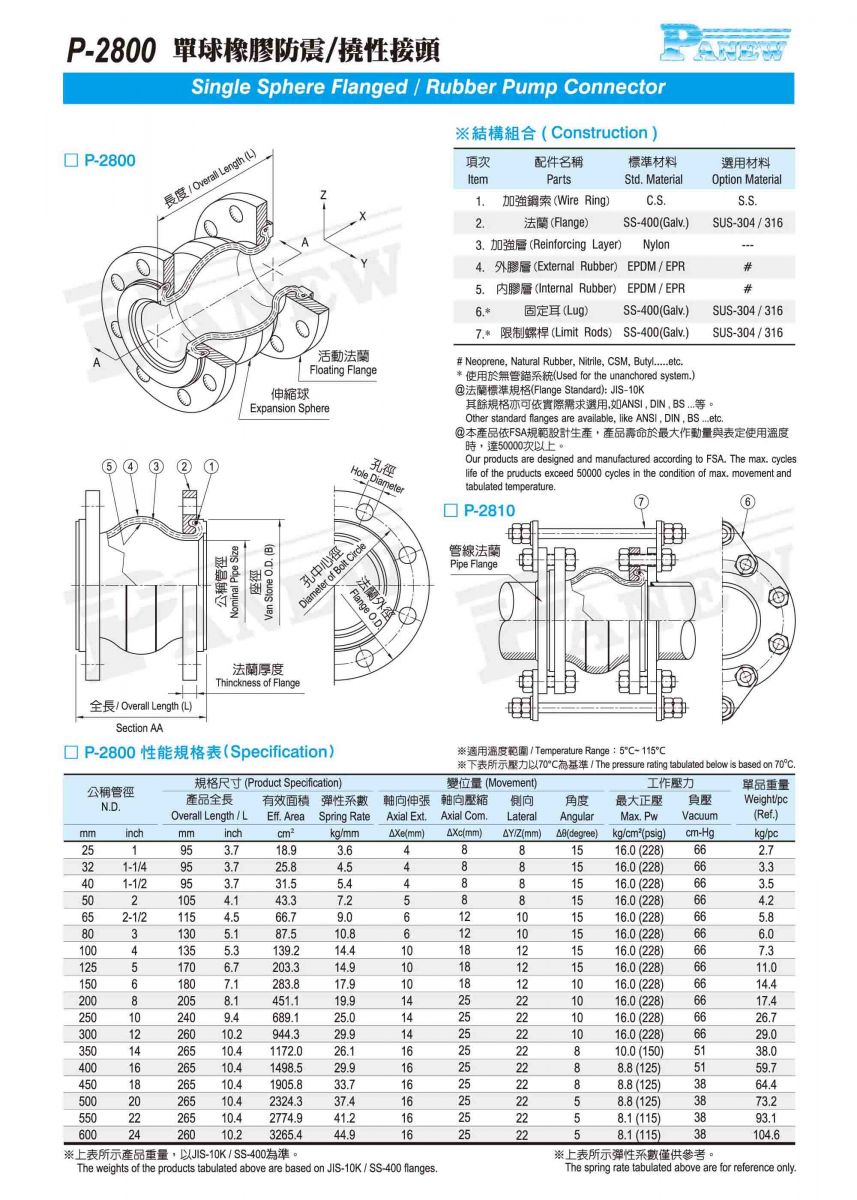P-2800 單球型橡膠防震接頭