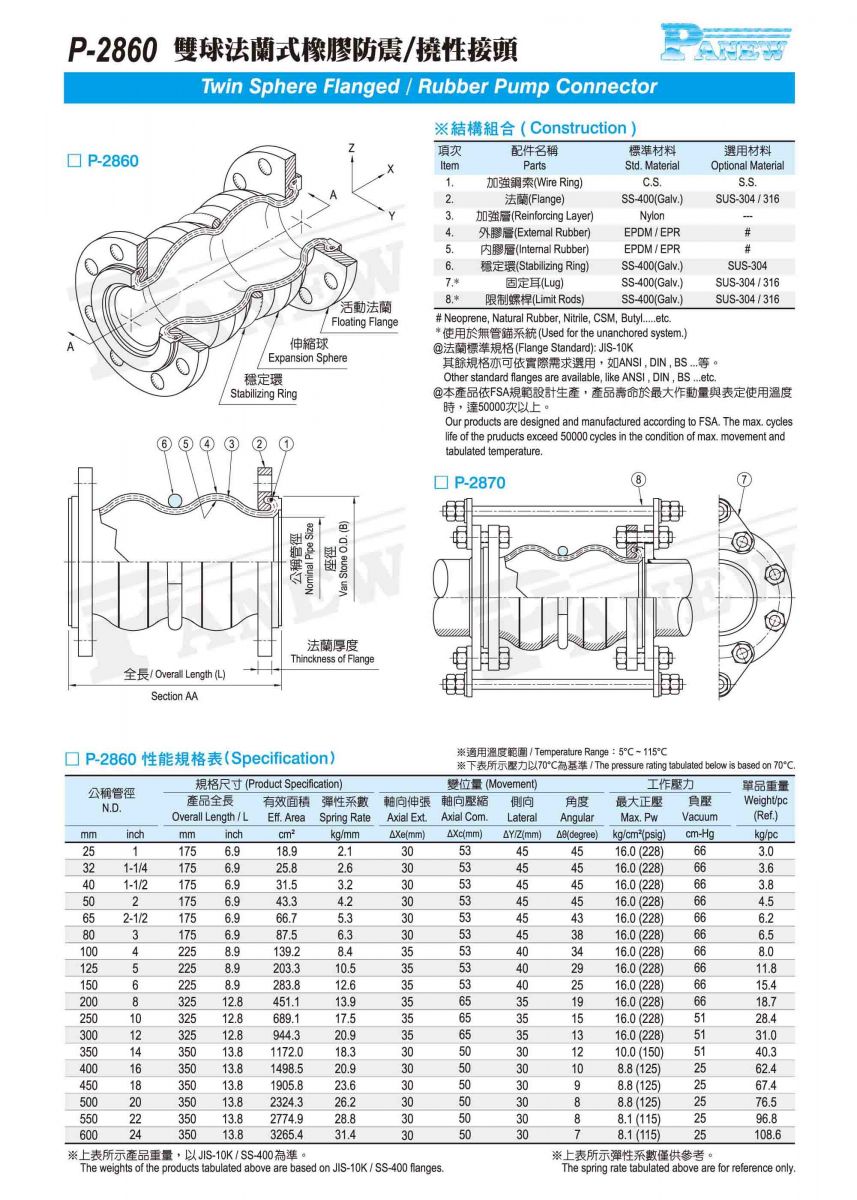P-2860 雙球型橡膠防震接頭