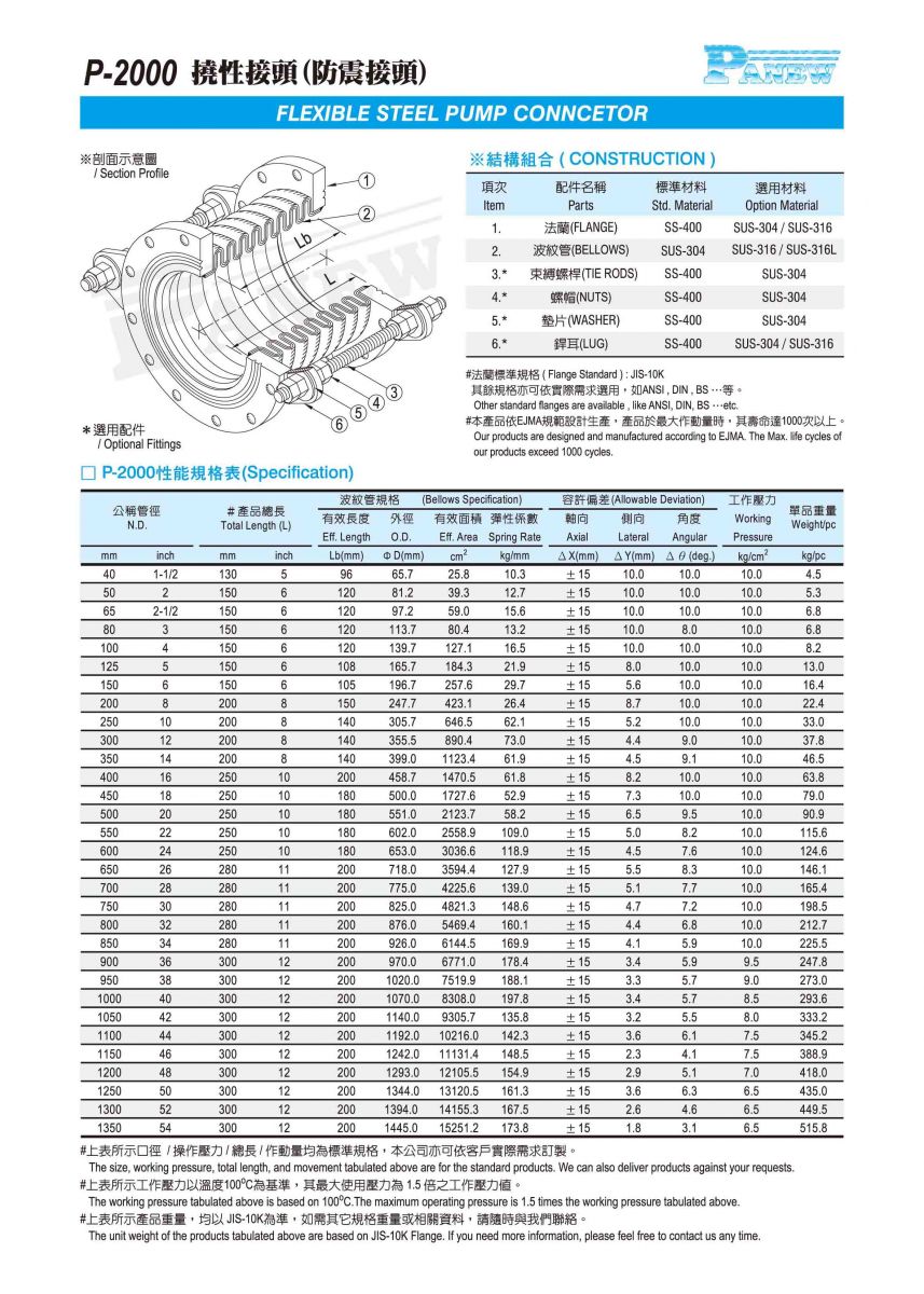 P-2000 / 2200 可撓性防震接頭
