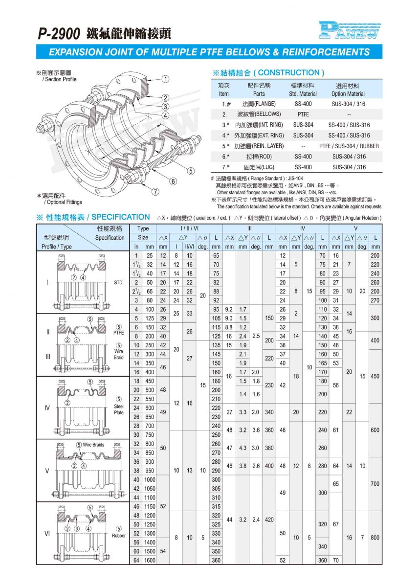 P-2900 鐵氟龍伸縮接頭