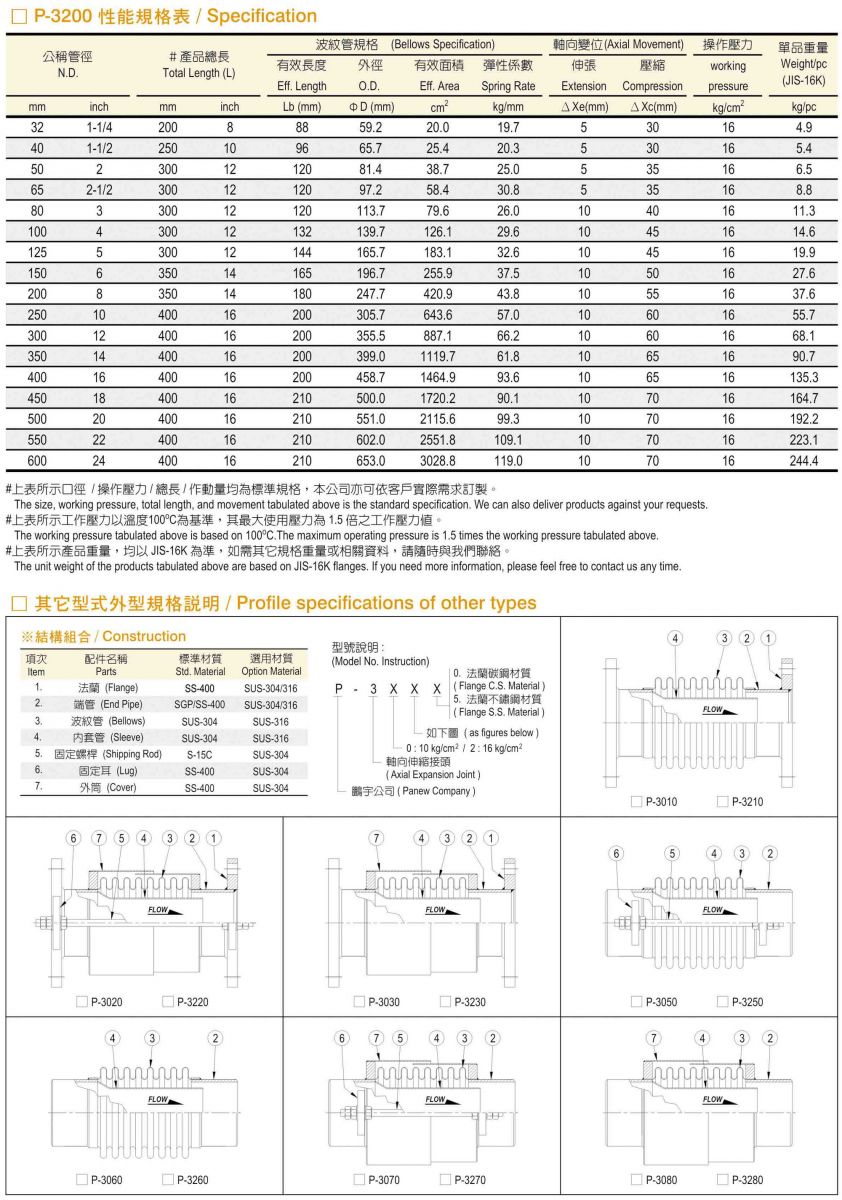 P-3200 軸向式伸縮接頭
